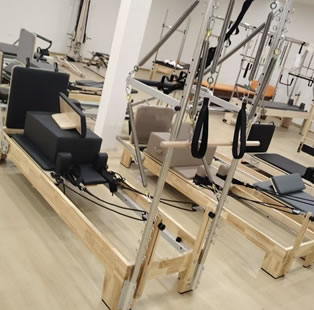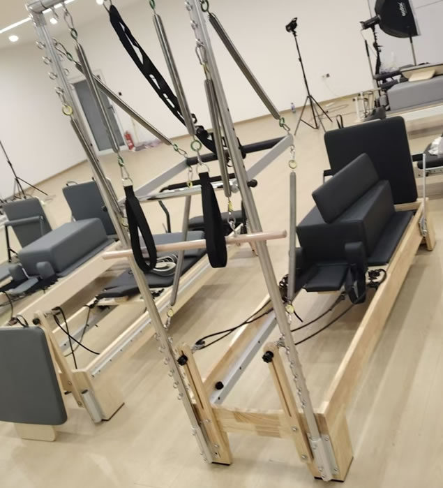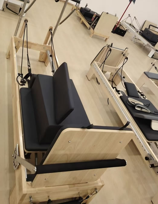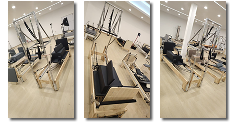 You perform a series of controlled exercises on the reformer while lying, sitting, kneeling, or standing.